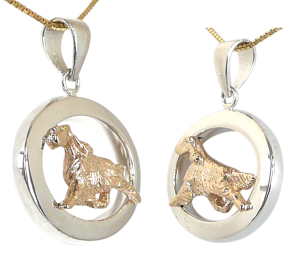 • 14K Gold or Sterling Silver Irish Setter in Glossy Oval Pendant
