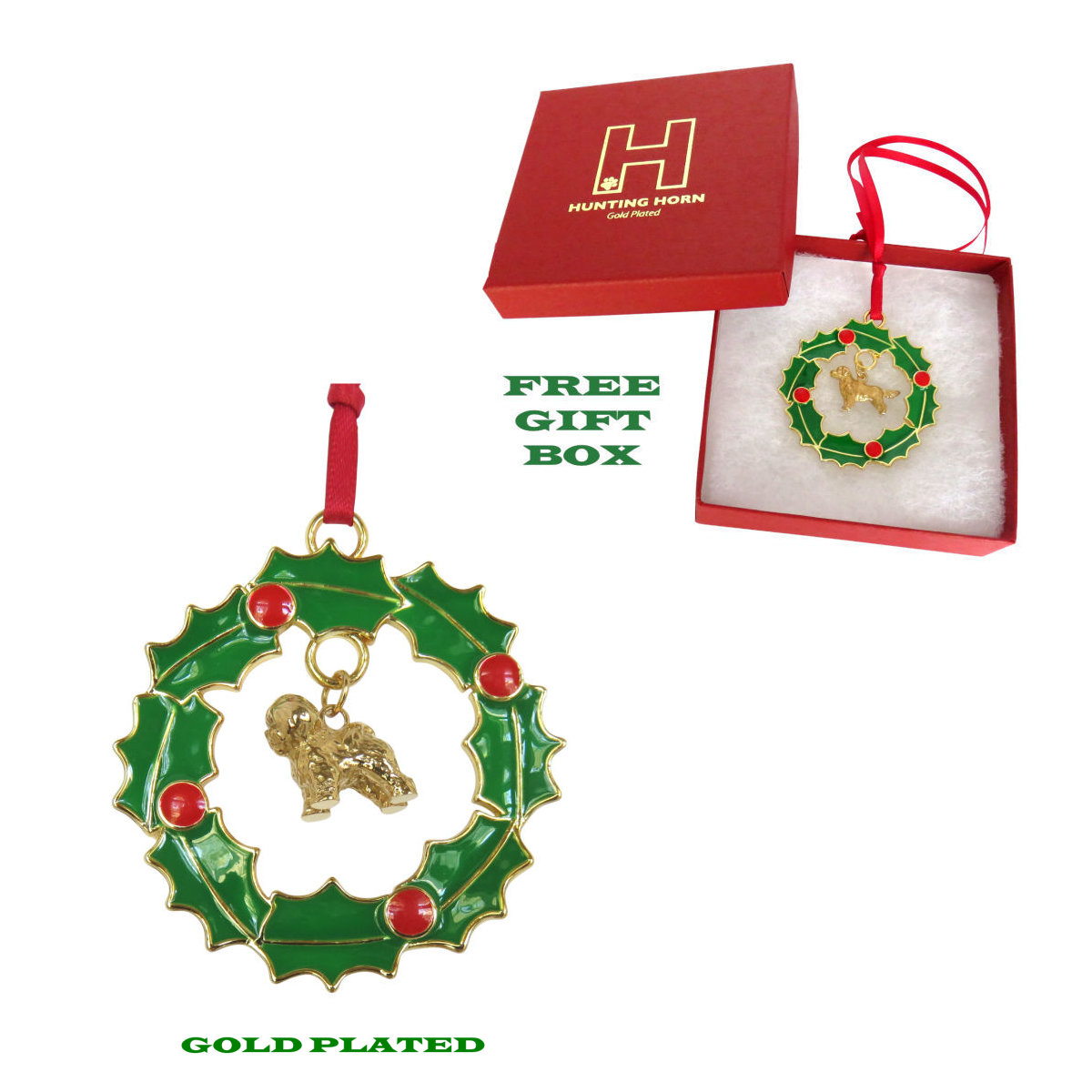 The brilliant GOLD PLATING on dog and wreath is durable and prevents tarnish
