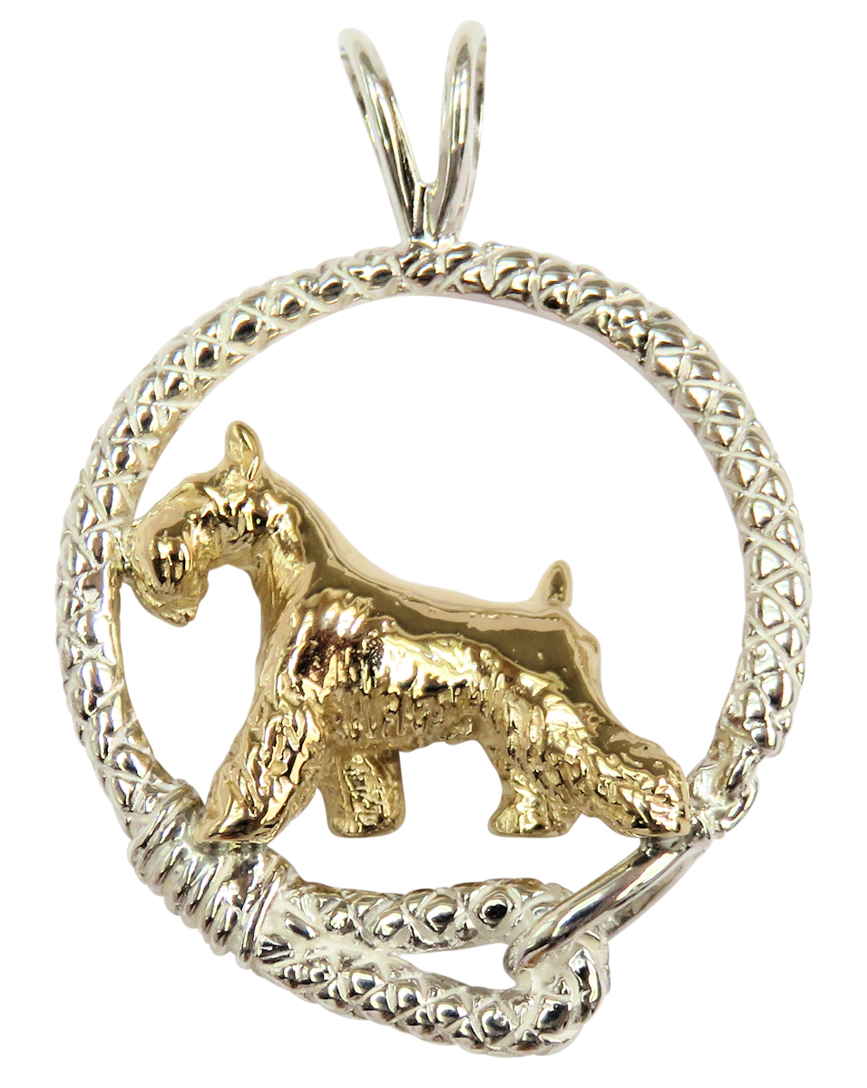 Miniature Schnauzer in Leash Pendant Charm Necklace in 14K Gold or Sterling Silver