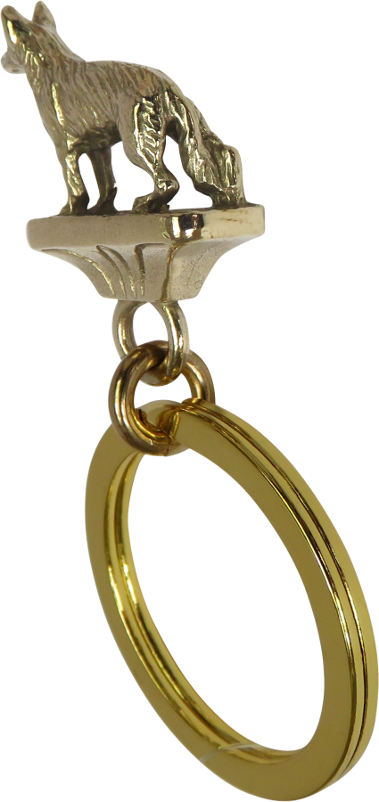 Solid Bronze German Shepherd Dog Key Ring - Front View